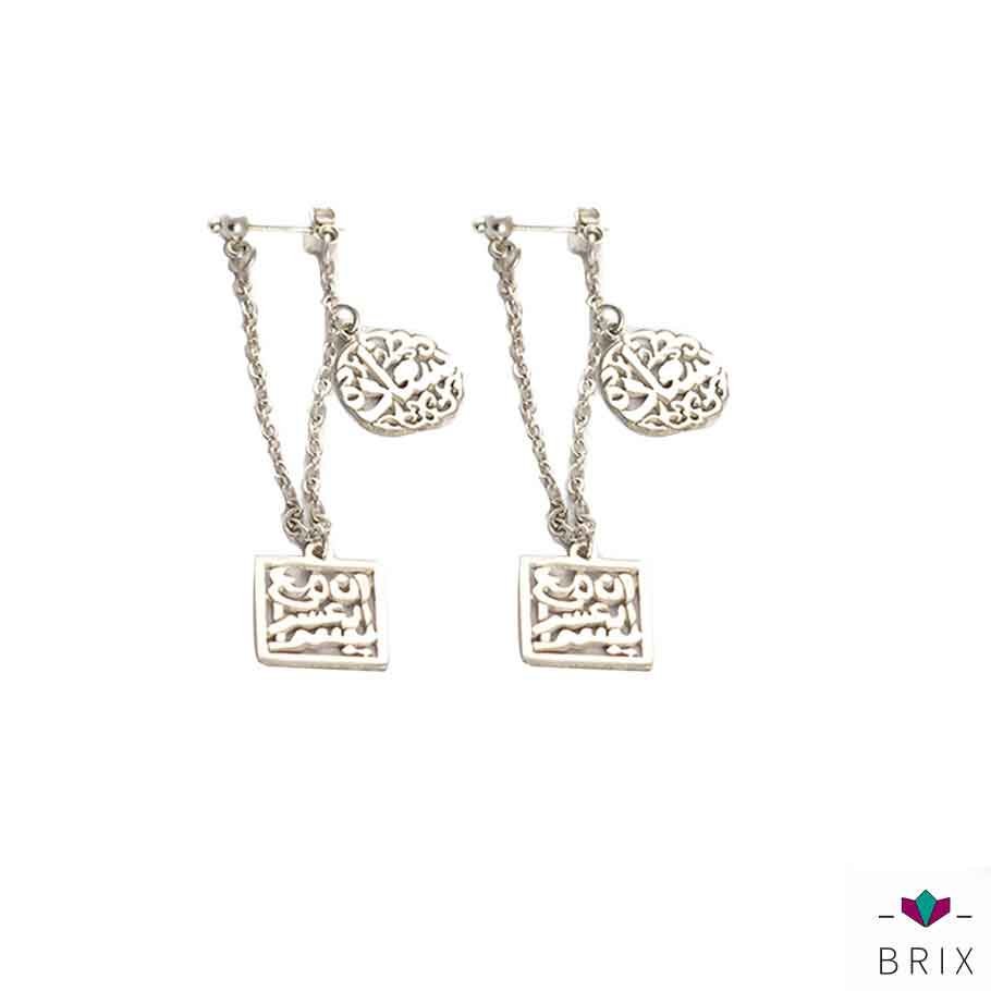 ✨ Stand out with a truly unique accessory the Calligraphy Chained Earrings, handmade from 925 sterling silver. These artistic earrings feature two different-shaped coins linked by a delicate chain: one round charm hollowed with the word “Happiness”, and the other a square charm engraved with the Quranic verse “With every difficulty there is easiness.” A balanced blend of faith and style.
